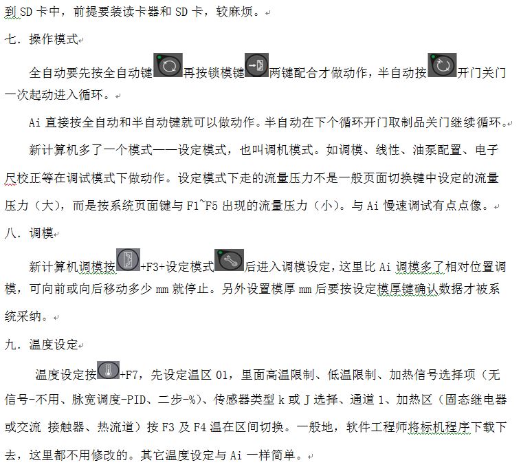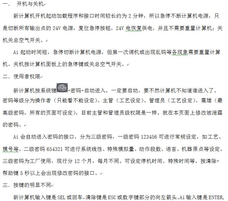 大家可能對我們常使用的Ai計算機比較熟悉,但對公司新推出的這款CBmold300倍福全新計算機比較陌生。為了能讓各位在較短的時間里了解和熟悉新計算機,我們技術中心特地制作四篇快速操作指引,其中包括調機員、維修、工藝操作指引和不同點比較,供大家參考。不同的崗位員工各取所需,可按照上面指引一步一步操作來熟悉計算機。在這里我只摘錄其中的不同點即CBmold300計算機與Ai計算機明顯不同點,希望對諸位有所裨益。大家有什么補充或建議,歡迎致電。以下就是具體內容。